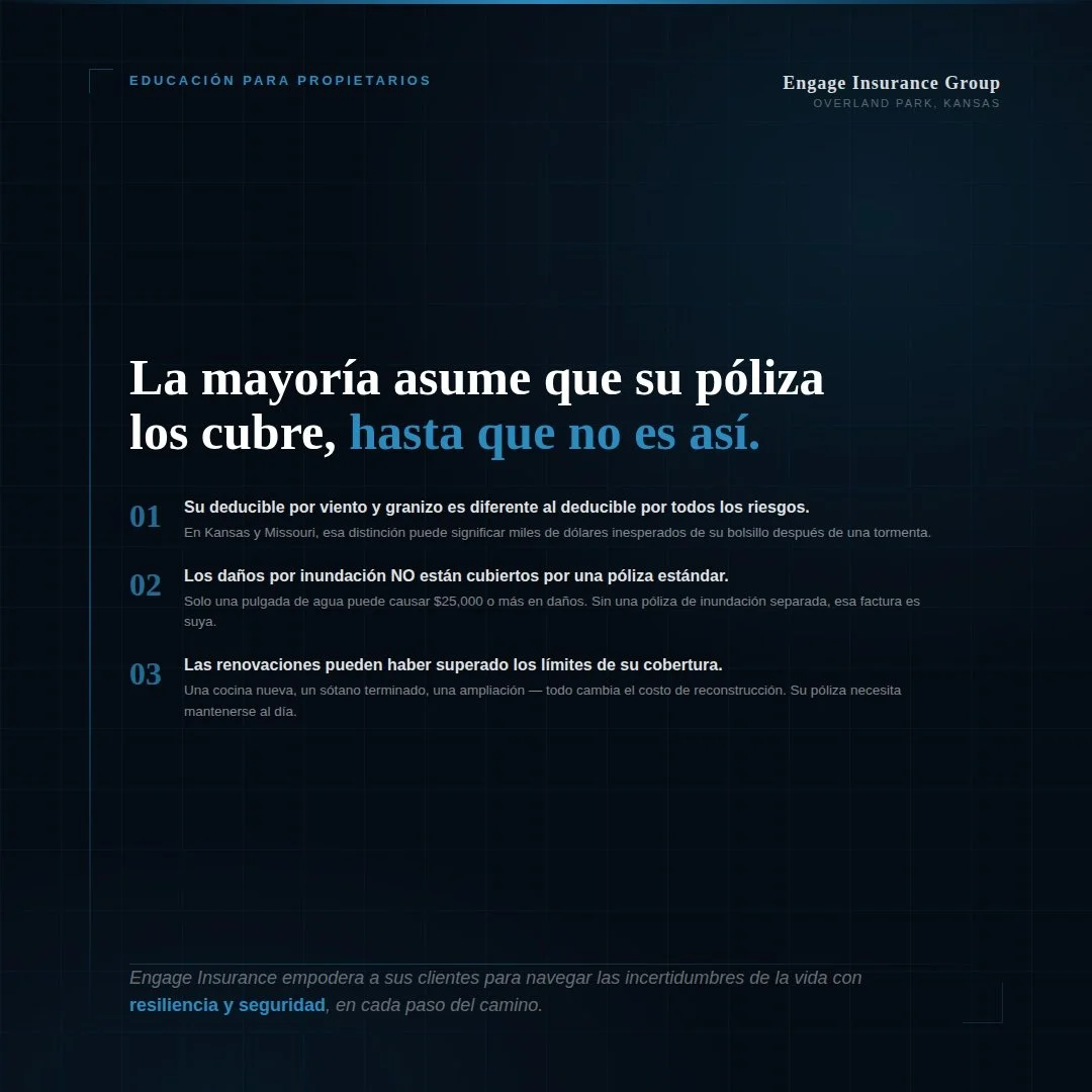 Una revisión rápida de su póliza puede marcar una diferencia importante. En Engage Insurance Group, ayudamos a los propietarios a entender exactamente con qué cobertura cuentan y qué podría estarles faltando.